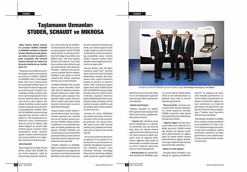 Metal Makina Dergisi Mart-Nisan Sayısında Studer silindirik taşlama makinaları ile ilgili makalemize yer verdi.